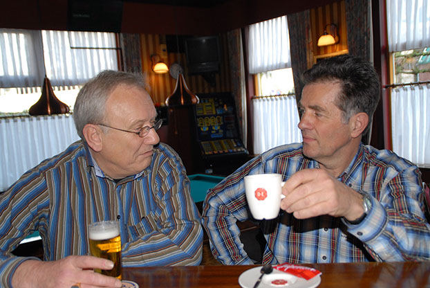 Wim, Jan en Roel,. Jan kan zo het leger weer in  Roel en Ruud tijdens het eten bij de Chinees  V.l.n.r. Joop Stienstra, Jan Taal, Ger Naber, Roel Wildeboer, Ton Weghs, Pieter van Ooststroom, André van Duijn, Walter Grootens, Ad Rijsdijk, Henk Kops, Rien Rovers, Hans Prins en Olaf de Jongh