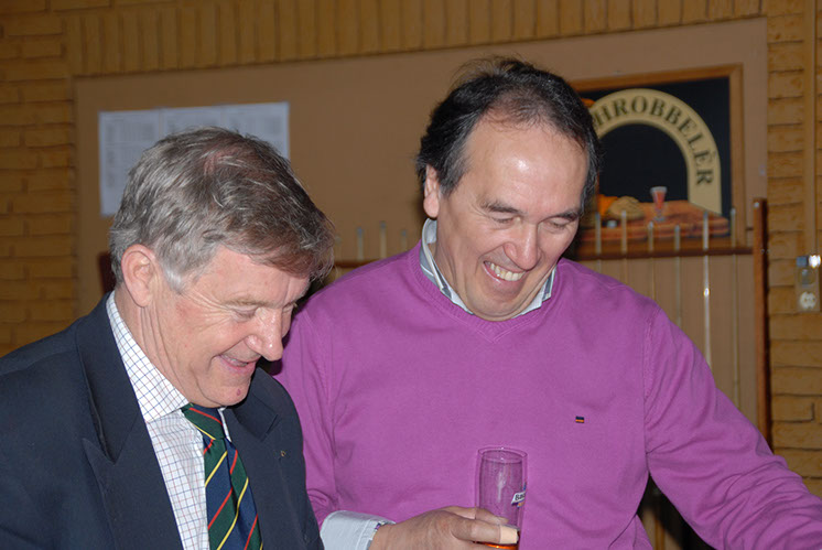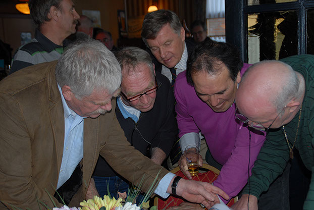Joop, Jan en Ger  André, Ad en Rien  Gezellig aan de bar bijpraten  Olaf kwam iets te laat maar hij moest ook 'helemaal' uit Wageningen komen  De catering was uitstekend verzorgd  Beetje pedis Jan?  Henk, Ton, Roel en Joop  Walter, Olaf, Ton, Ger en Roel