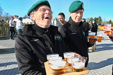 Staand: Reijer Oud, Pierre Schreiner, Herman Wortelboer, Anton Jungerhans, Wim Kwak, Ger Naber, Ad Rijsdijk, Pieter van Ooststroom, Olaf de Jongh (n.a,) Dries de Vink, Jan Taal, Zittend: Ton Weghs, Hans Prins, Rien Rovers, Ger Pastoor, Roel Wildeboer, Walter Grootens en André van Duijn Ad en Pieter Dries, Wim, Herman en Walter Op naar het sportveld Walter, Ad, Wim, André, Pieter en Jan Herman, Reijer en André, Wim in het midden en rechts Herman Even bijkletsen met de maten Roel, Anton en Ger Naber, Het wordt al lekker vol Walter en Wim met Ger in gesprek, Op naar het defilé